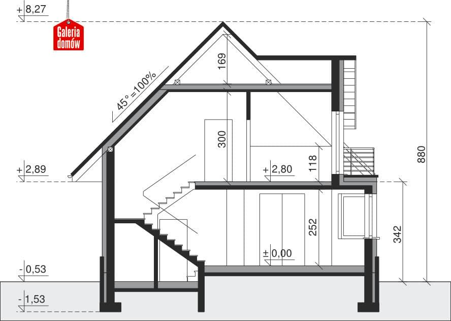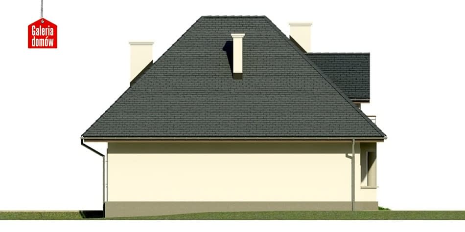 Dach: kąt nachylenia 45°, pokrycie - dachówka ceramiczna lub betonowa.