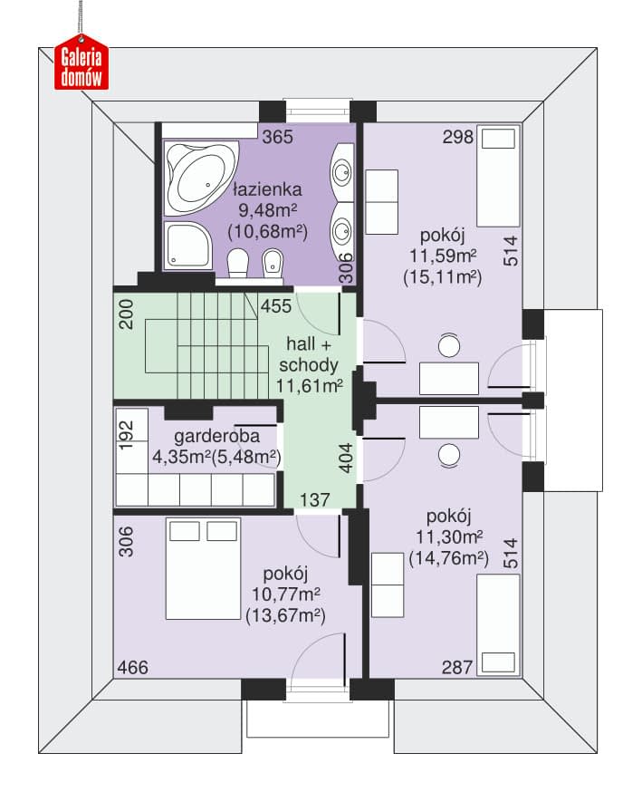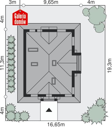 Dach: kąt nachylenia 45°, pokrycie - dachówka ceramiczna lub betonowa.