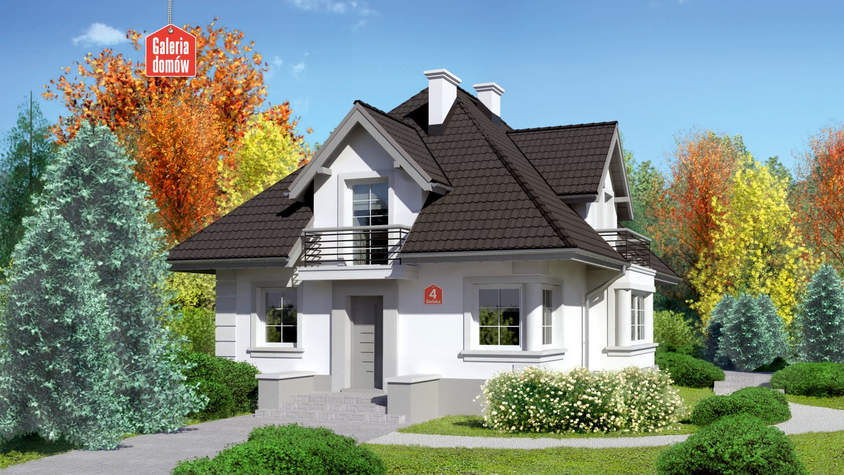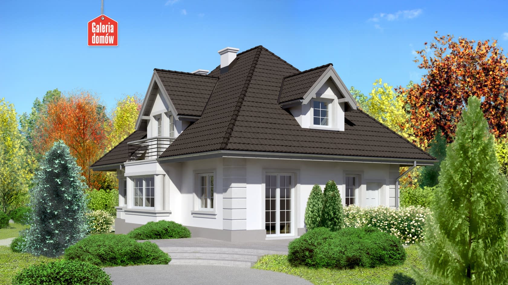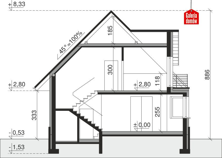 Dach: kąt nachylenia 45°, pokrycie - dachówka ceramiczna lub betonowa.