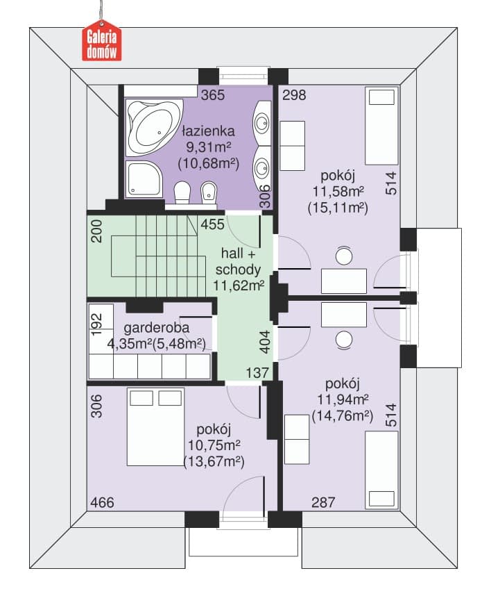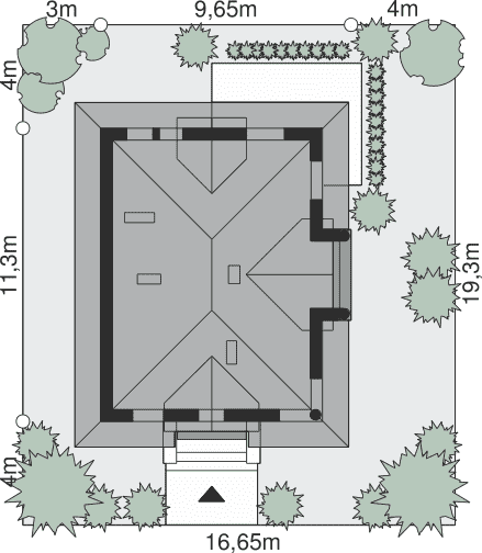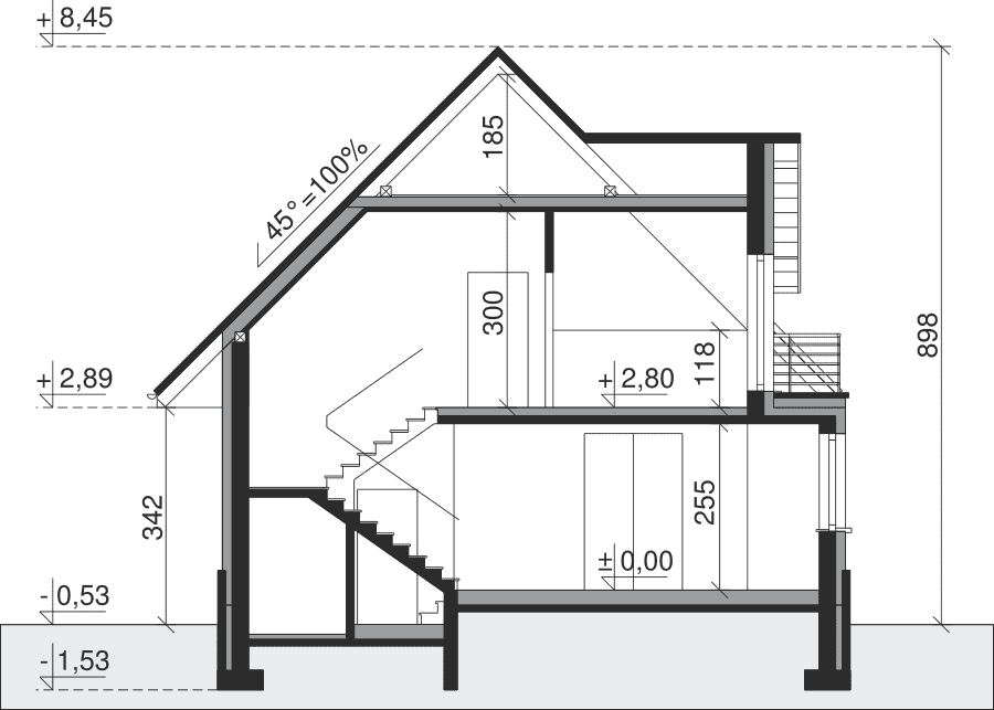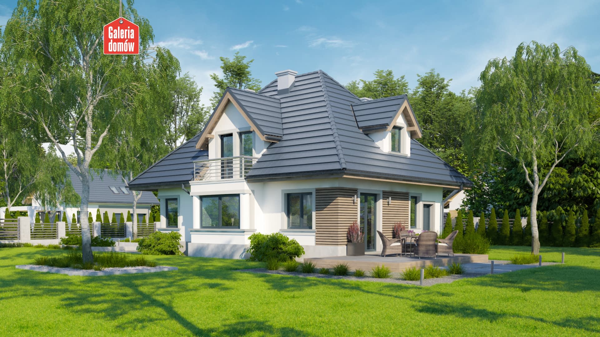 Dach: kąt nachylenia 45°, pokrycie - dachówka ceramiczna lub betonowa.