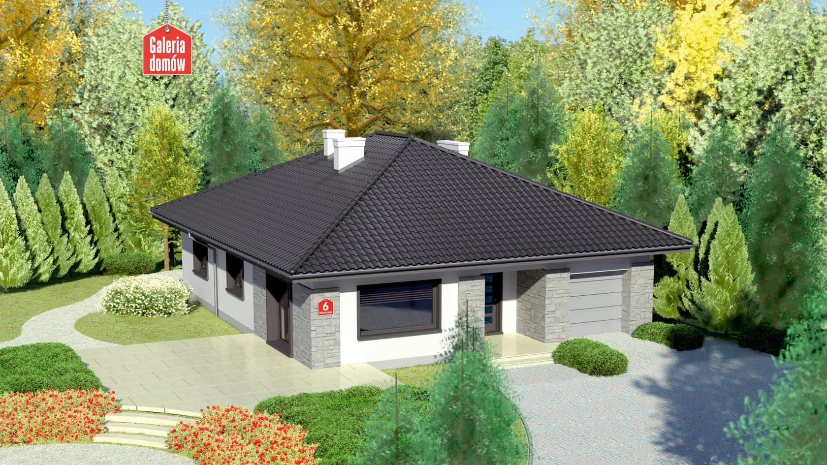 W projekcie Domu przy Słonecznej 6 architekci postawili na wysoki poziom komfortu i bezpieczeństwa. Zadbano o to by forma służyła użyteczności. Widać to już na pierwszy rzut oka. Duże przednie okno, lekko schowane wejście do domu i wygodny wjazd do garażu. Kamienne elementy elewacji dodają dyskretnego uroku. Prosta konstrukcja czterospadowego dachu. To wszystko sprawi, że poczujemy się tak samo dobrze wewnątrz, jak i na zewnątrz tego domu.Konstrukcja