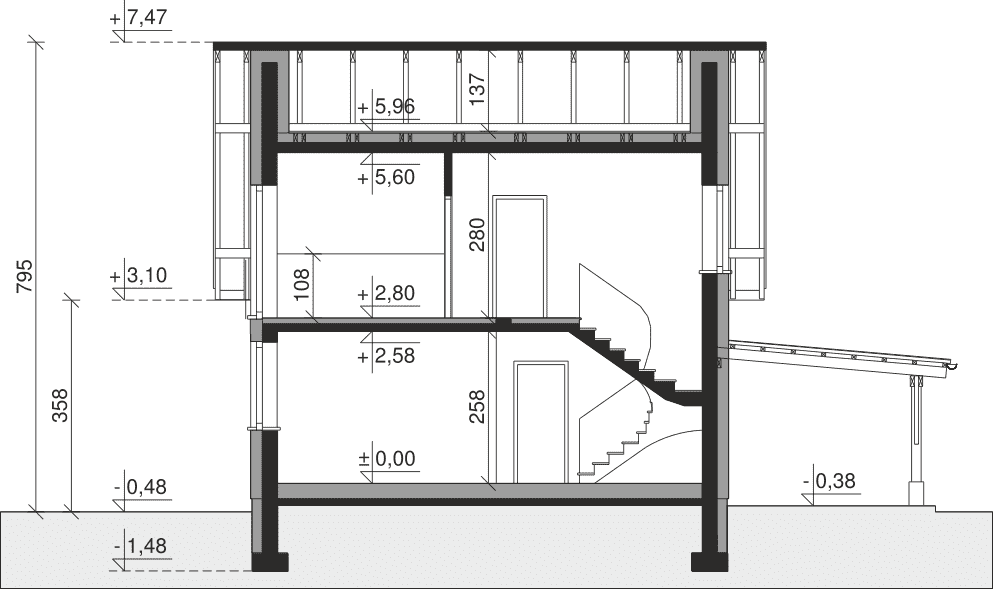 - Wysokość domu7.95 m