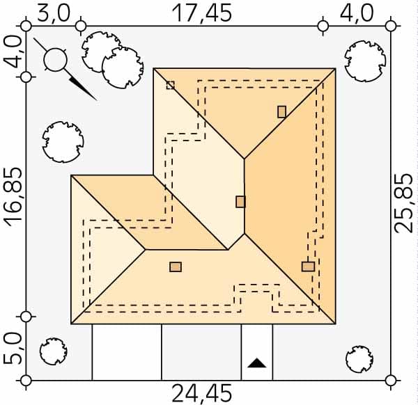 - Minimalne wymiary działki25.85 x 24.45m