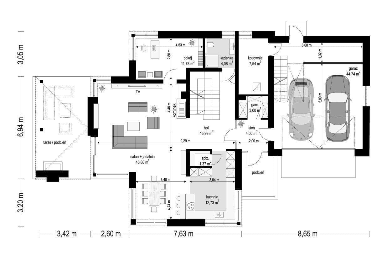 - Długość domu13.19 m