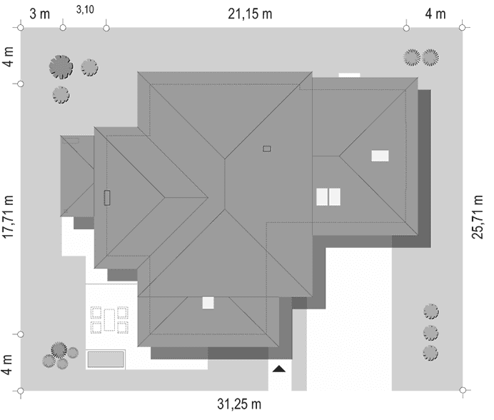 - Minimalne wymiary działki25.71 x 31.25m