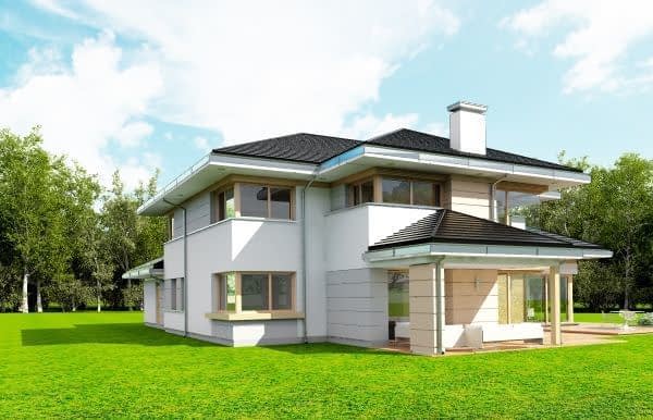Projekt domu Dom z widokiem jest luksusową, nowoczesną willą jednorodzinną, przeznaczoną dla 4-6 domowników. Projekt domu Dom z Widokiem nadaje się do budowy nawet na działce z niekorzystnym usytuowaniem w stosunku do stron świata. Dom z Widokiem zaprojektowany został jako rozłożysta piętrowa rezydencja, połączona z otaczającym ogrodem licznymi przeszkleniami, oraz otwartymi i zadaszonymi tarasami.Bryła Domu z WidokiemBryła Domu z Widokiem składa się z zasadniczej części piętrowej i trzech parterowych skrzydeł, tworzących w całości układ litery "T". Projekt Dom z Widokiem jest na tyle uniwersalny, że może być postawiony na każdej działce. Część wejściowo-wjazdowa i część tarasowa od strony salonu tworzą dwa osobne półotwarte dziedzińce: frontowy i ogrodowy. Duże narożne okna z rzadkimi podziałami stanowią wizytówkę Domu z Widokiem. Elewację urozmaicają liczne detale, okładziny z piaskowca, boniowania tynku i drewniane wykończenia. Całość przykryta jest łagodnym dachem z szerokimi okapami. Projekt Dom z Widokiem ma nowoczesną, ale stonowaną architekturę. Emanuje z niej spokój i elegancja. Dzięki połączeniu dobrych sprawdzonych detali architektura domu z widokiem nigdy się nie zestarzeje i nie wyjdzie z mody. Jednymi z głównych atrakcji Domu z Widokiem są jego duże przeszklenia, a największą atrakcją jest dwukondygnacyjny szklany narożnik salonu, łączący pokój dzienny z pustką z tarasem i ogrodem. Pozostałe przeszklenia: w jadalni, w kuchni, sypialniach, czy przy wejściu do domku, dodatkowo potęgują efekt otwartości wnętrza.Dom z Widokiem wnętrzePrzestrzeń jest luksusem i wnętrze Domu z Widokiem zaprojektowano kierując się tą właśnie myślą. Parter budynku mieszkalnego to w dużej mierze otwarta duża część dzienna - salon, jadalnia, hol, kuchnia. Na parterze zmieściliśmy dodatkowy pokój - gabinet lub sypialnię gościnną. Piętro to sypialnie rodziców i dzieci z łazienkami i garderobami. Na piętrze mieści się duża antresola nad salonem, którą można wykorzystać jako dodatkowy pokój. Funkcjonalnie zaprojektowane wnętrze Domu z Widokeim zapewnia wygodne mieszkanie wszystkim domownikom. Projekt domu Dom z widokiem to dom dla osób wyjątkowych, z wizją, z pragnieniem życia w nietuzinkowym otoczeniu, wśród pięknych wnętrz.Dom z Widokiem jest energooszczędny, więc będzie tani w użytkowaniu. Kosztorysanci MG Projekt oszacowali koszty budowy domu Dom z Widokiem do stanu surowego zamkniętego na 381743 zł. Projekt domu Dom z Widokiem dostępny jest w odbiciu lustrzanym, kilku wariantach oraz w innych wersjach domu z widokiem: Dom z widokiem 2, Dom z widokiem 2C, Dom z widokiem 3, Dom z widokiem 3F, Dom z widokiem 4, Dom z widokiem 5, Dom z widokiem 6, Dom z widokiem 6B, Dom z widokiem B, Dom z widokiem E.