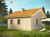 Domek 8 to niewielki budynek gospodarczy lub rekreacji indywidualnej o powierzchni zabudowy poniżej 35m2, a zatem niewymagający pozwolenia na budowę. Wejście do budynku oraz niewielka weranda znalazły się pod zadaszeniem, zapewniającym ochronę przed deszczem. Jasna kolorystyka w ciepłych odcieniach dodaje budynkowi przytulności.Wewnątrz zaprojektowano trzy pomieszczenia. W największym z nich znalazł się blat kuchenny oraz piecyk typu koza, przewidziano ponadto miejsce na szafę. Od frontu ulokowano łazienkę.Rzuty