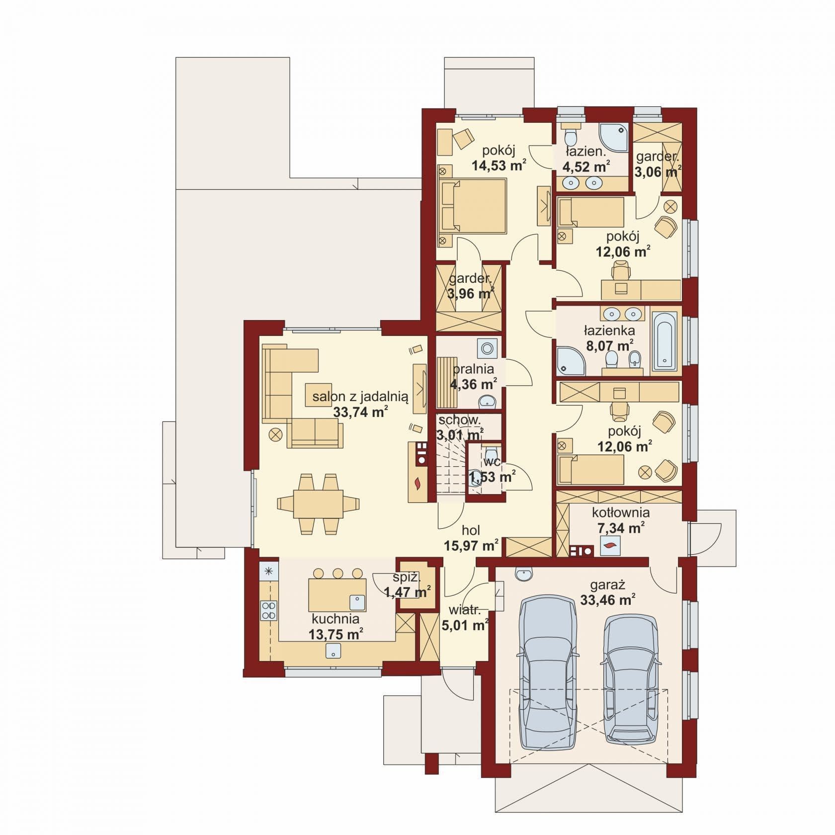 - Garaż:33,46 m²