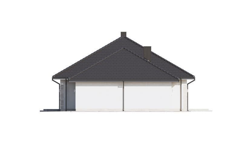 DOMENA 112 B1 to dom dla czteroosobowej rodziny. Przedsionek z miejscem na szafę otwiera się na strefę dzienną, składającą się z przestronnego salonu połączonego z jadalnią oraz kuchnią ze spiżarnią. Z funkcjonalnego holu mamy dostęp do sypialni, dwóch pokoi oraz dwóch łazienek. W tej części znajduje się także ogólnodostępna garderoba. Chcąc wykorzystać, po adaptacji, strych, najlepiej umieścić schody w jej miejscu. W części gospodarczej umieszczona została pralnia, z której możemy przejść do garażu, a dalej do kotłowni z własnym wyjściem.