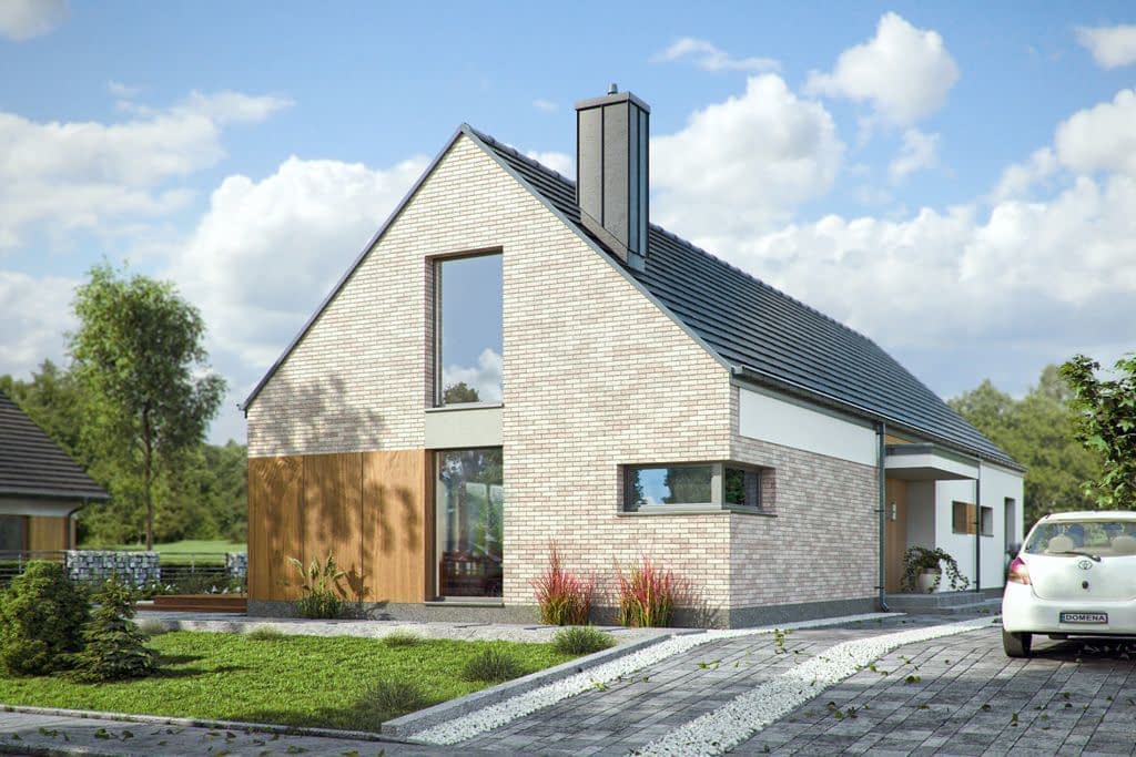 DOMENY 123 C1 to projekt dla 4-5 osobowej rodziny, stworzony na wąską działkę.