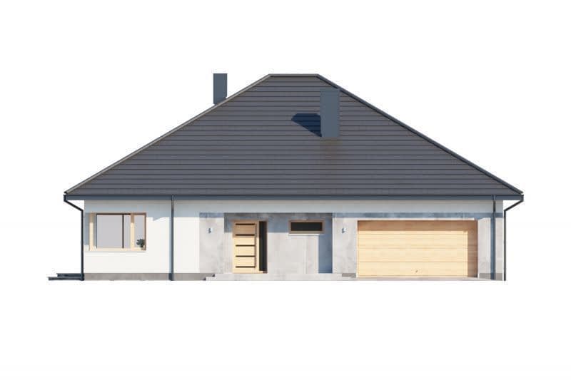 Przedsionek z miejscem na szafę otwiera się na strefę dzienną, składającą się z przestronnego salonu połączonego z jadalnią oraz kuchnią ze spiżarnią. Z funkcjonalnego korytarza mamy dostęp do strefy prywatnej - trzech sypialni (jedna z garderobą) oraz gospodarczej, na którą składają się łazienka, kotłownia oraz wygodny garaż.