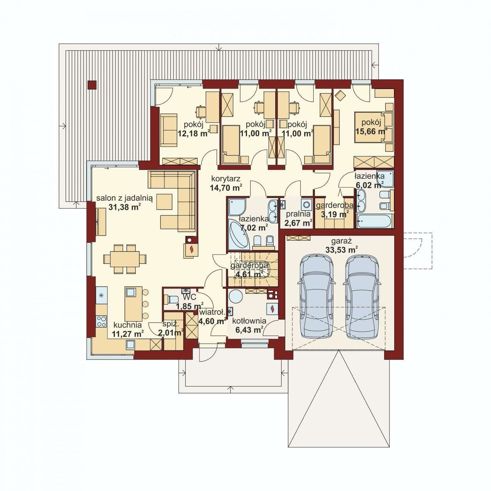 - Garaż:33,53 m²