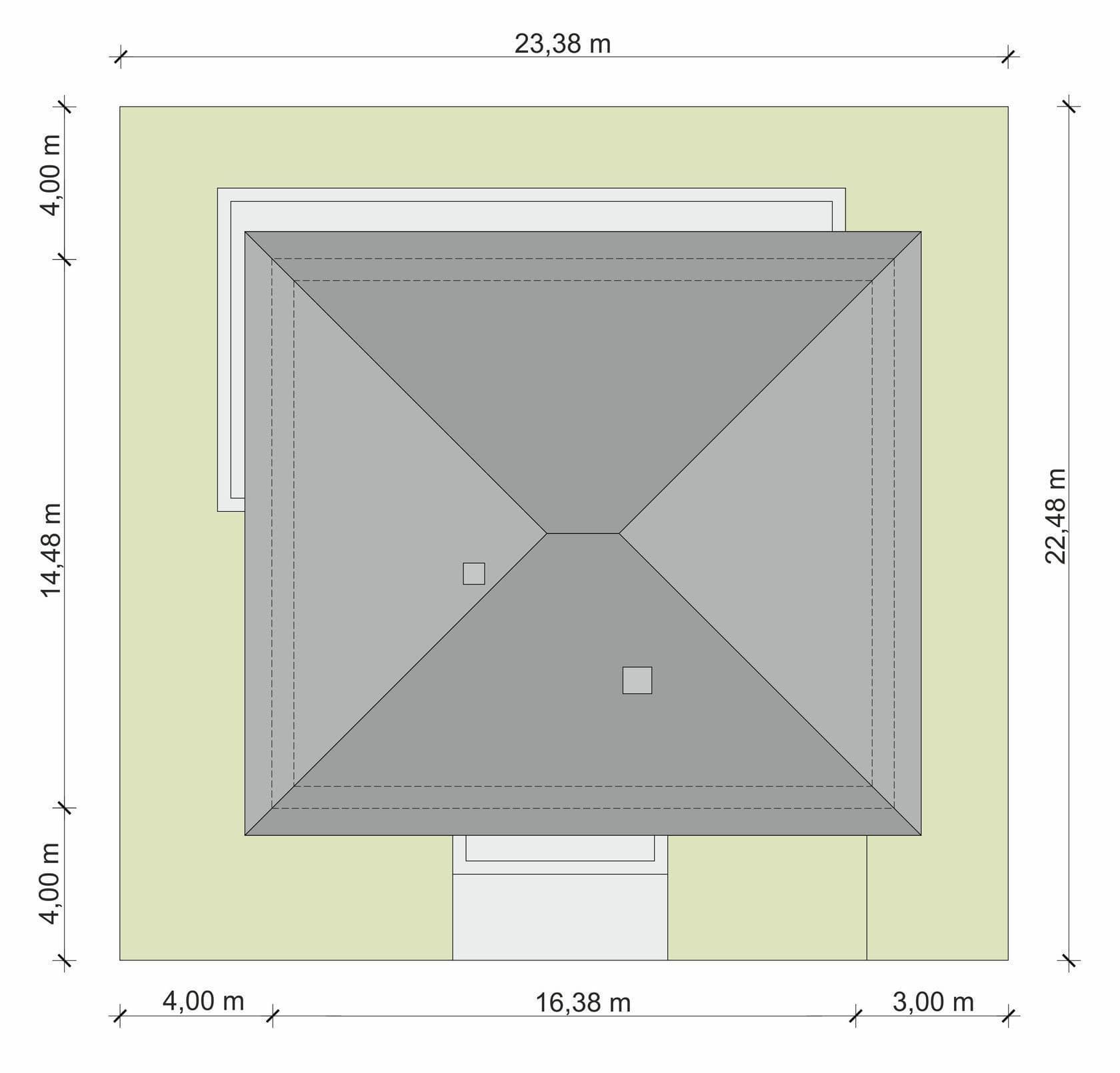 - Szerokość domu16.38 m