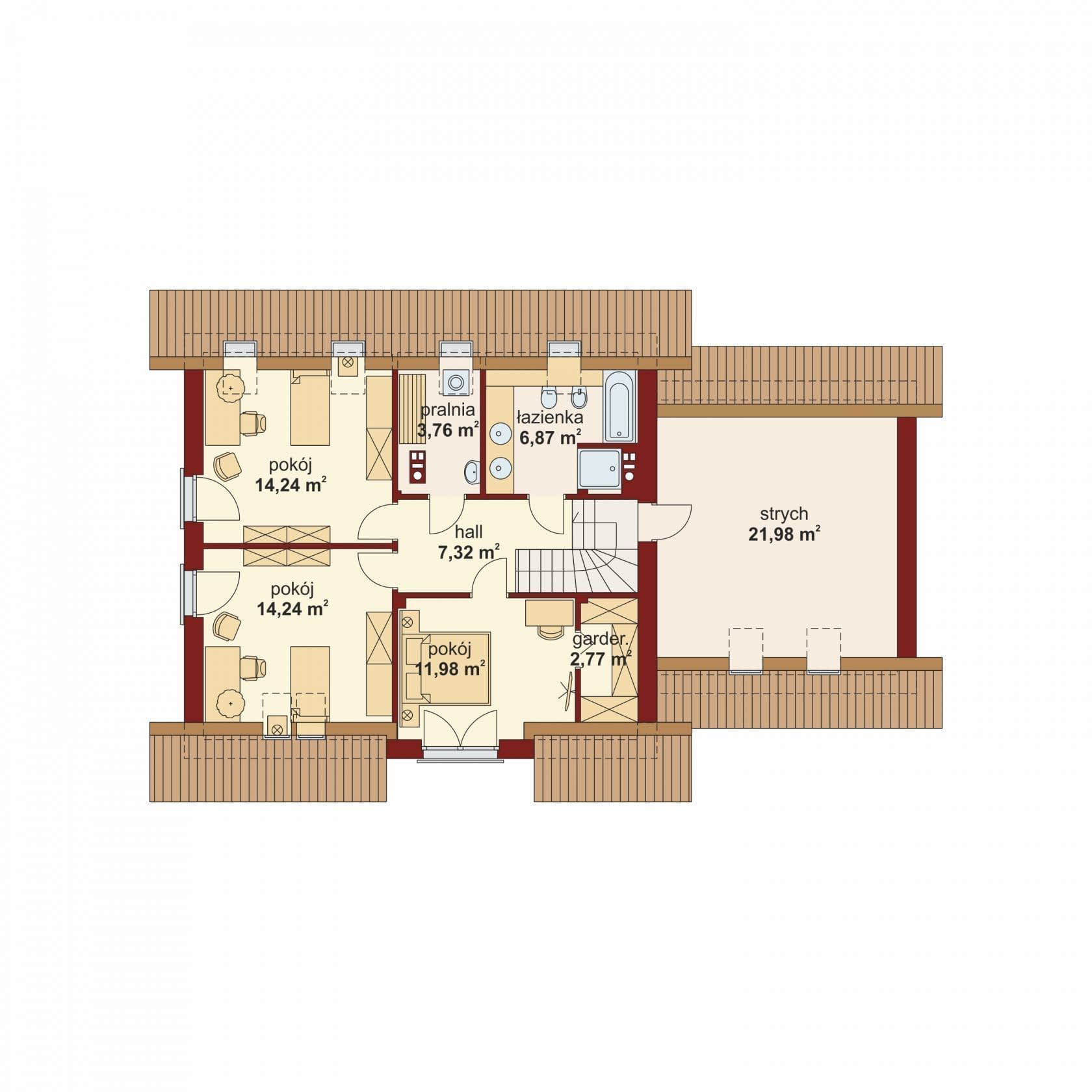 Klasyczna bryła DOMENY 201 B została stworzona z myślą o 4-5, a po zaadaptowaniu strychu nawet 6-7-osobowej rodzinie.