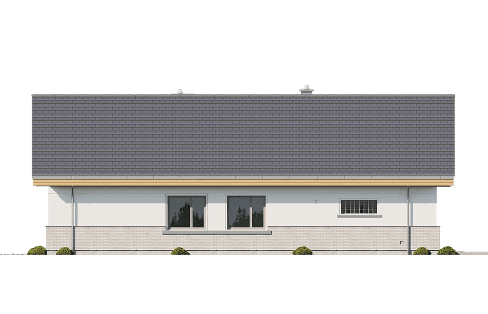Wariant projektu ze zmienionym dachem na dwuspadowy i dodanymi oknami w ścianach szczytowych.