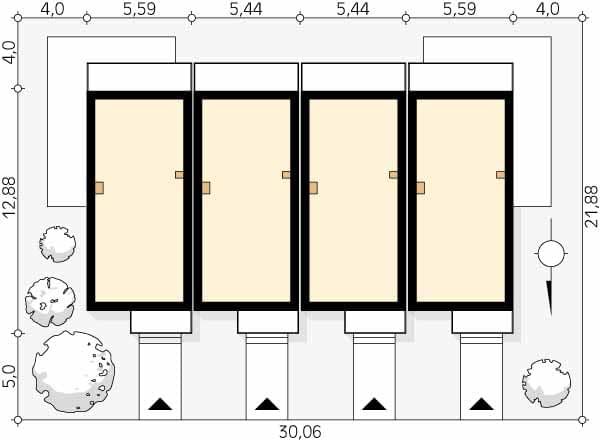 - Minimalne wymiary działki21.64 x 31.56m