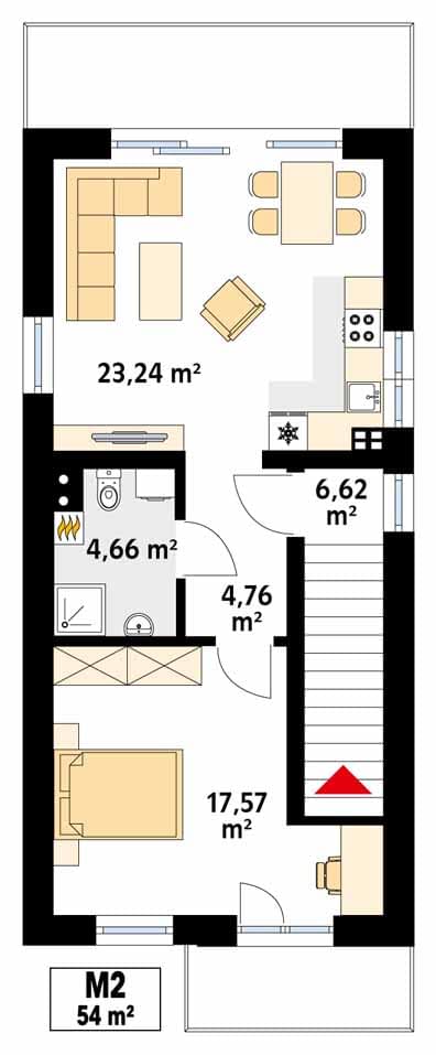 - Długość domu12.64 m