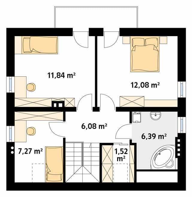 DROZD 2 to projekt domu jednorodzinnego z optymalnie wykorzystaną przestrzenią. Wyróżnia się stonowaną kolorystyką elewacji oraz prostą i nowoczesną bryłą. Na parterze znajduje się salon z jadalnią, kuchnia, miejsce na spiżarnię lub garderobę pod jednym z biegów klatki schodowej, dodatkowy pokój oraz duża kotłownia. Poddasze zawiera trzy sypialnie, dwie z nich mają wydzielone miejsce do pracy, obszerny taras, łazienka i garderoba. Projekt domu występuje również w wersji z garażem pod nazwą DROZD.Konstrukcja