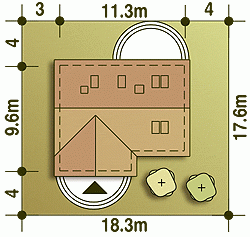 - Minimalne wymiary działki17.6 x 18.3m