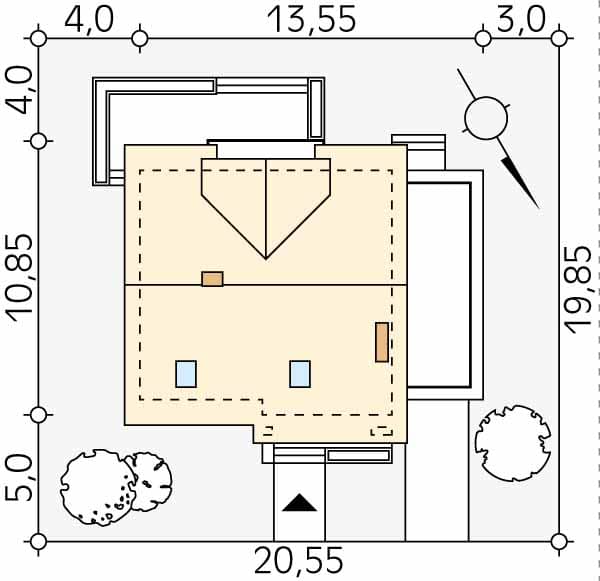 - Minimalne wymiary działki19.85 x 20.55m
