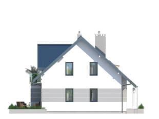 Niewielki dom jednorodzinny z garażem o nowoczesnym i oryginalnym wyrazie. Odznacza się optymalnym wykorzystaniem przestrzeni. Parter to przestronny salon z jadalnią, kuchnia, miejsce na spiżarnię lub garderobę pod jednym z biegów klatki schodowej, kotłownia, garaż z pomieszczeniem gospodarczym i dodatkowym wyjściem z budynku. Na poddaszu znajdują się trzy sypialnie, dwie z wydzielonym miejscem do pracy, obszerny taras, łazienka i garderoba. Dostępna jest wersja projektu domu bez garażu o nazwie DROZD 2.Konstrukcja