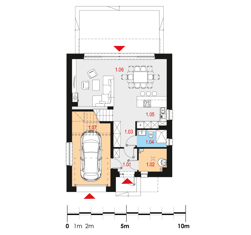 Stolarka okienna i drzwiowa: okna i drzwi PVC, rolety, brama garażowa segmentowa.