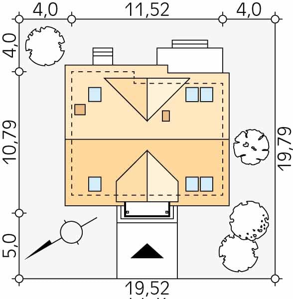- Minimalne wymiary działki19.79 x 19.52m