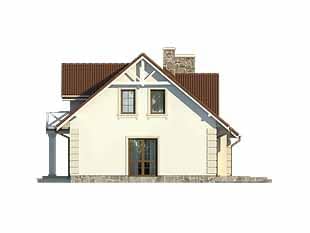 Jednorodzinny dom parterowy z użytkowym poddaszem. Klasyczna bryła budynku na rzucie prostokąta przykryta dwuspadowym dachem. Dom posiada optymalny program dla 4-osobowej rodziny. Na parterze przewidziano w części dziennej otwartą przestrzeń salonu i jadalni, kuchnię ze spiżarnią i dodatkowy pokój, w części gospodarczej łazienkę z kotłownią. Na poddaszu zaprojektowano 3 sypialnie oraz łazienkę.Konstrukcja