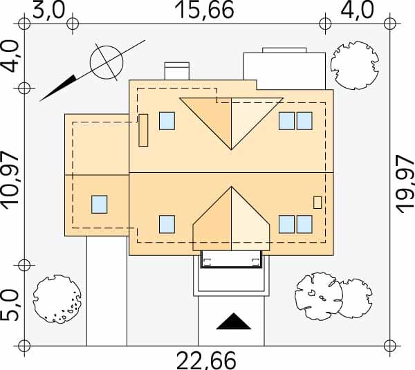 - Minimalne wymiary działki19.97 x 22.66m