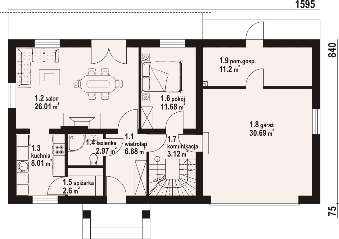 - 1.5 - spiżarka2.6 m²