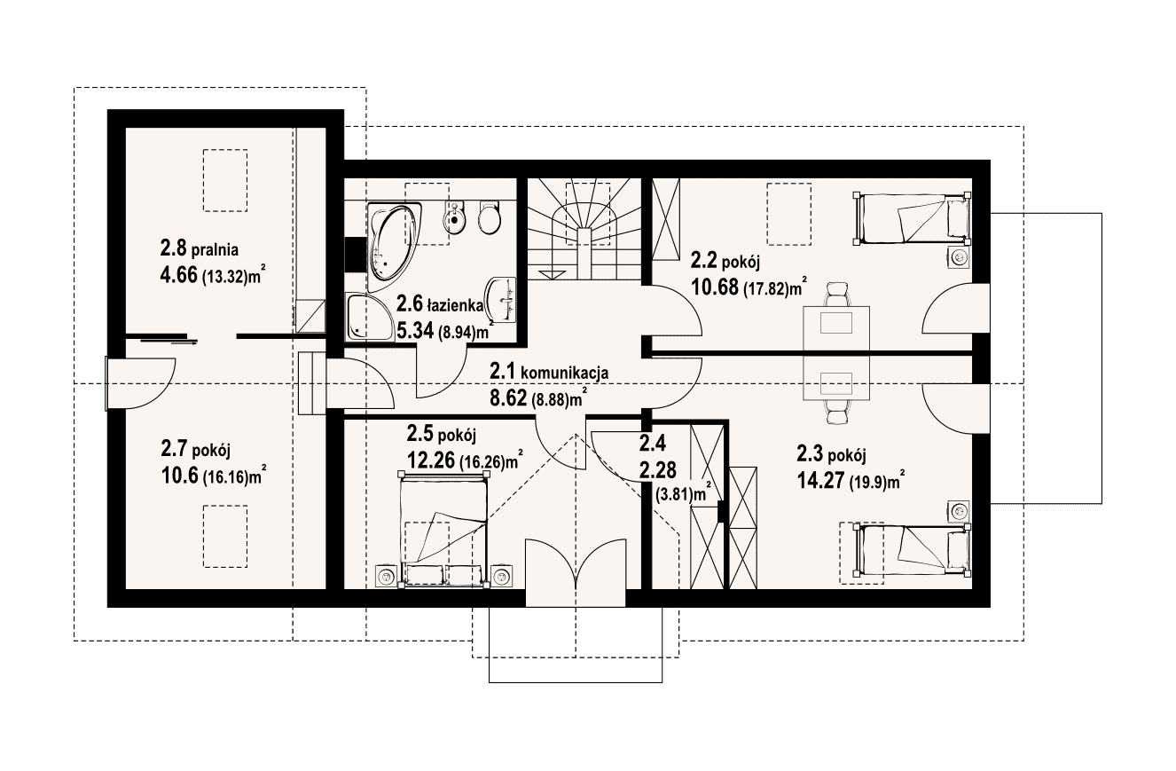 - KondygnacjeParterowy, z poddaszem