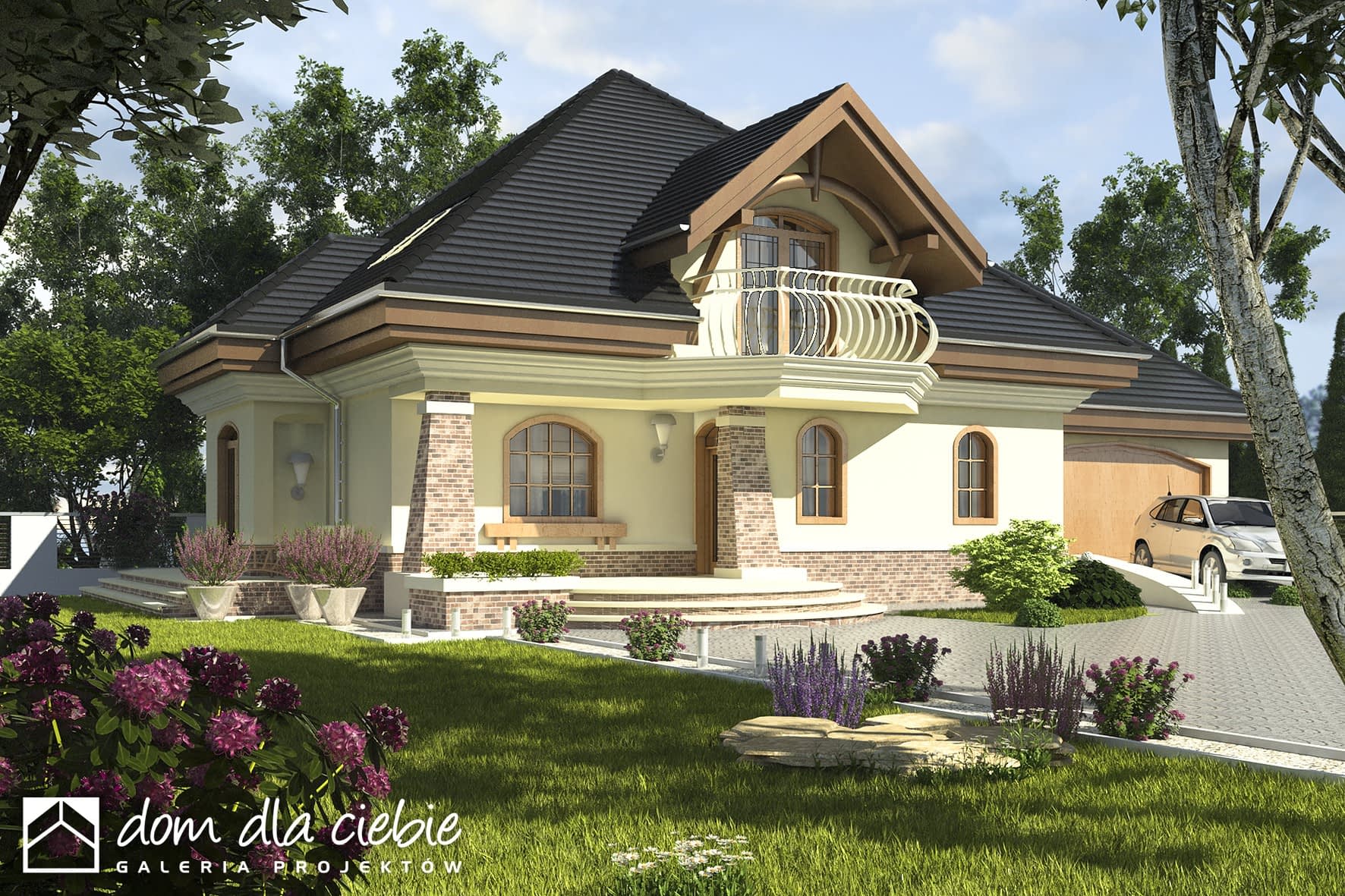 Projekt domu Dzierlatka V z G2 z garażem 2st.