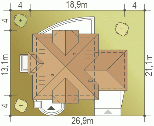 - Minimalne wymiary działki21.1 x 26.9m