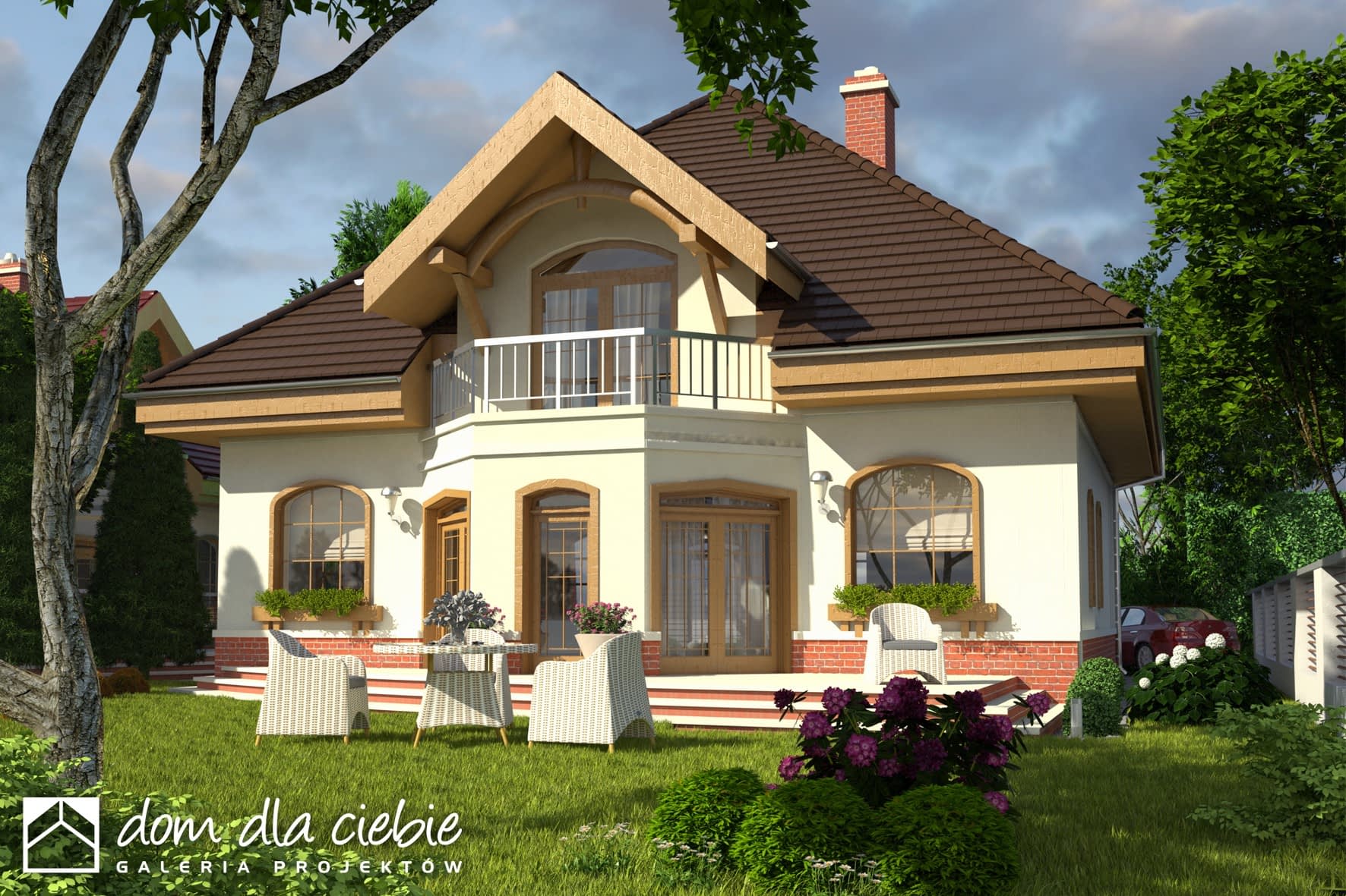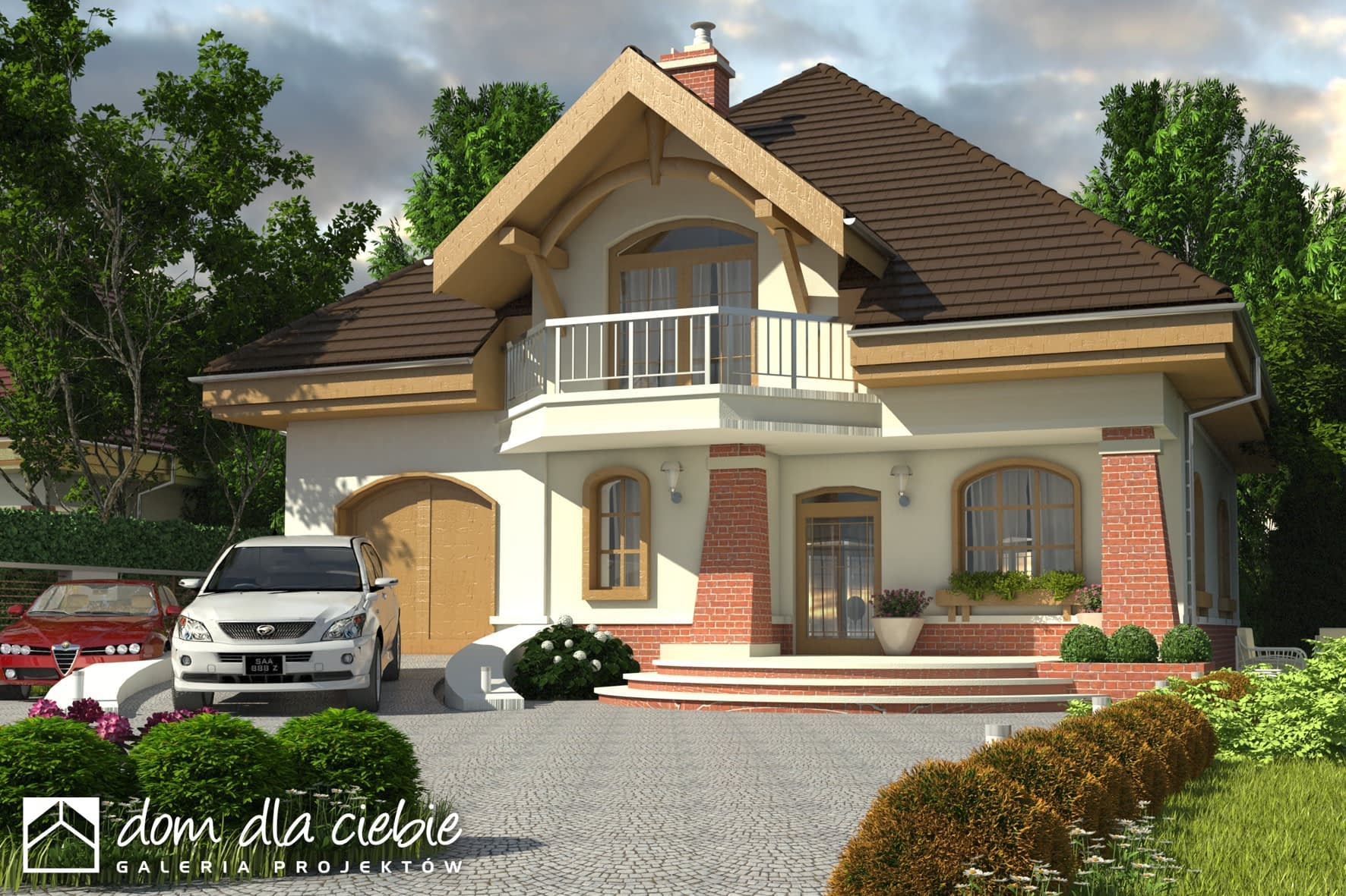 elewacje: tynk strukturalny, cegła klinkierowa