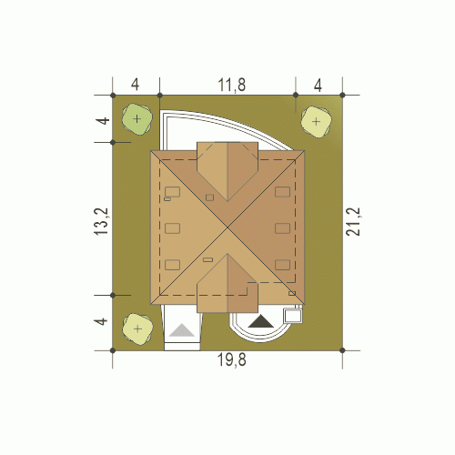 - Minimalne wymiary działki21.2 x 19.8m