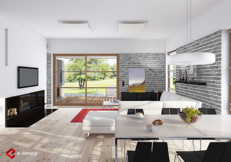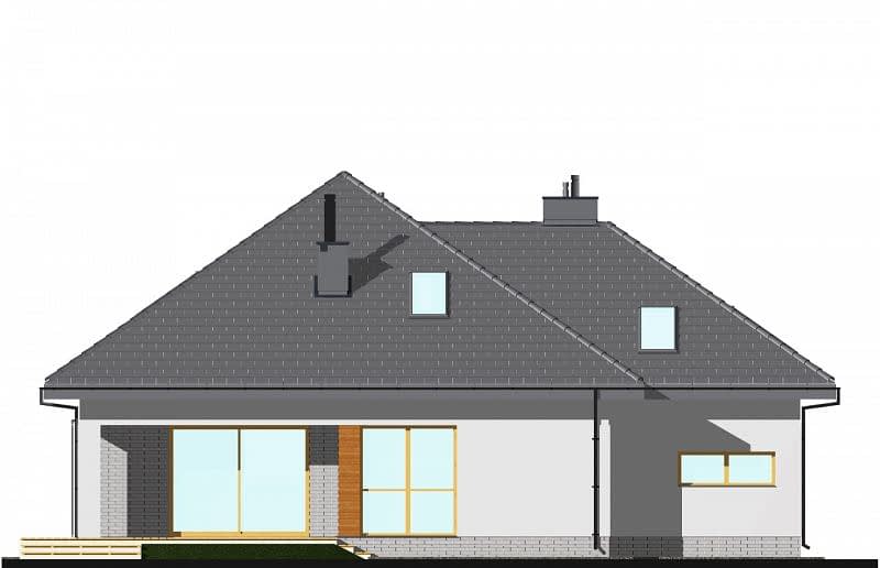 Projekt domu z poddaszem o kącie nachylenia połaci 35 stopni, z salonem połączonym z dużą kuchnią z jadalnią. Dodatkowy pokój na parterze można wykorzystać do pracy lub jako sypialnię. Na poddaszu zostały zlokalizowane trzy sypialnie oraz duża wspólna łazienka z narożną wanną.