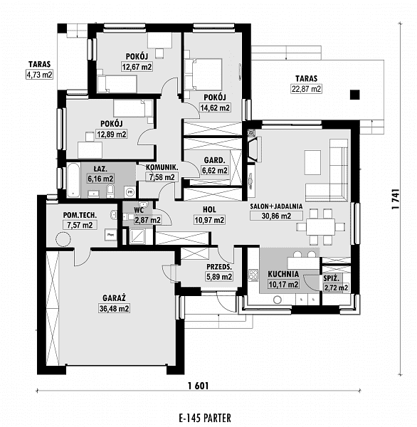 - zmniejszenie lub powiększenie garażu w ramach adaptacji projektu,