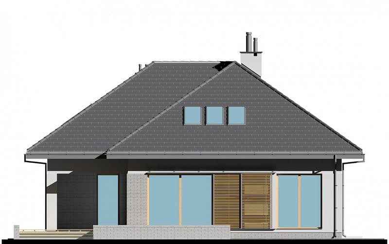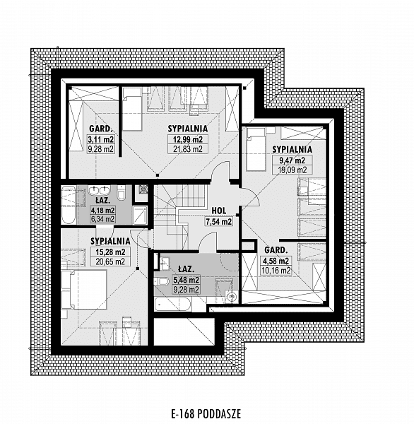 To zmieniona wersja projektu E-158, dla osób oczekujących dodatkowego pokoju do pracy umieszczonego blisko drziw wejściowych. Kuchnia została przesunięta bliżej ogrodu. Dzięki temu jest możliwość wyjścia na taras z kuchni oraz z jadalni. Jadalnia została zaprojektowana jako część salonu. Na poddaszu znajdują się 3 sypialnie oraz pomieszczenie rekreacyjne. W sypialni na garażem, zaprojektowano wyższą ściankę kolankową, która poprawia jej funkcjonalność.