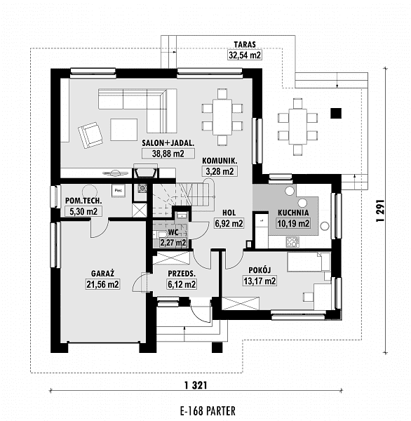 - zmniejszenie lub powiększenie garażu w ramach adaptacji projektu,