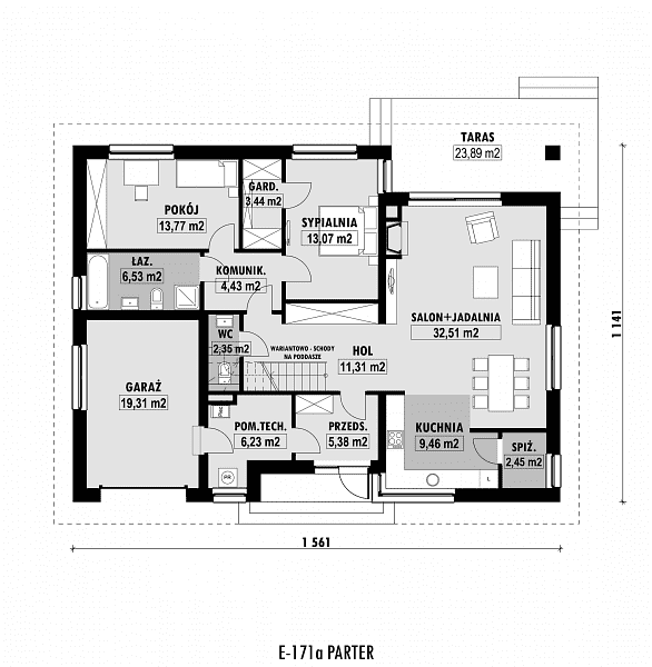 - zmniejszenie lub powiększenie garażu w ramach adaptacji projektu,