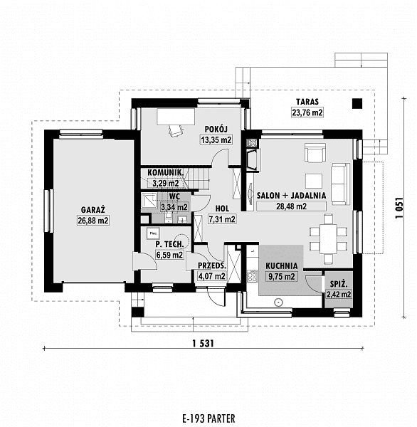 - Minimalne wymiary działki19.51 x 23.31m