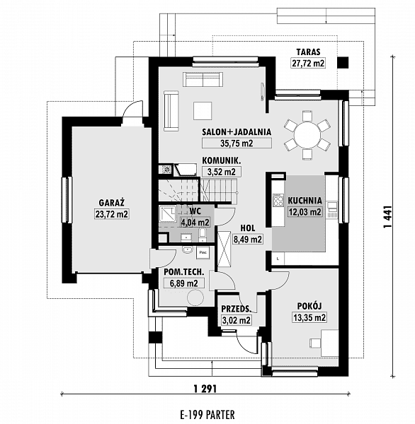 - Minimalne wymiary działki23.41 x 20.91m