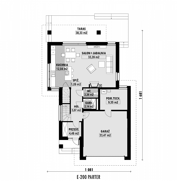 - zmniejszenie lub powiększenie garażu w ramach adaptacji projektu,