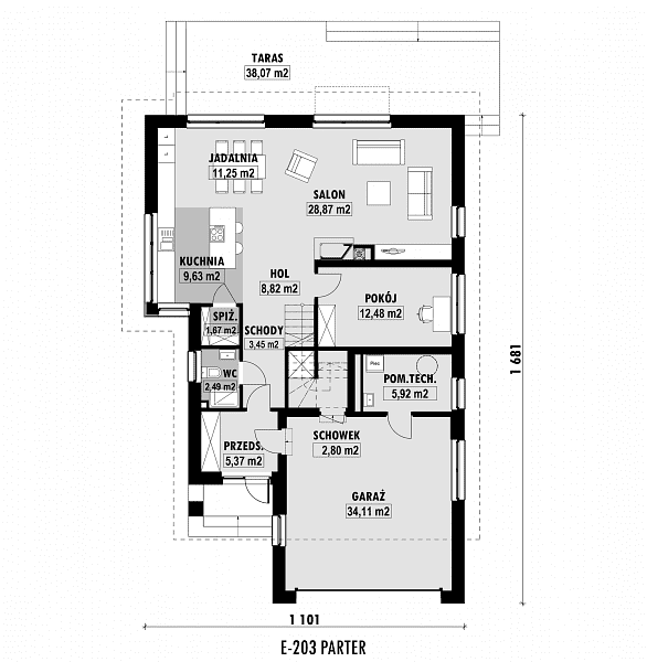 - zmniejszenie lub powiększenie garażu w ramach adaptacji projektu,