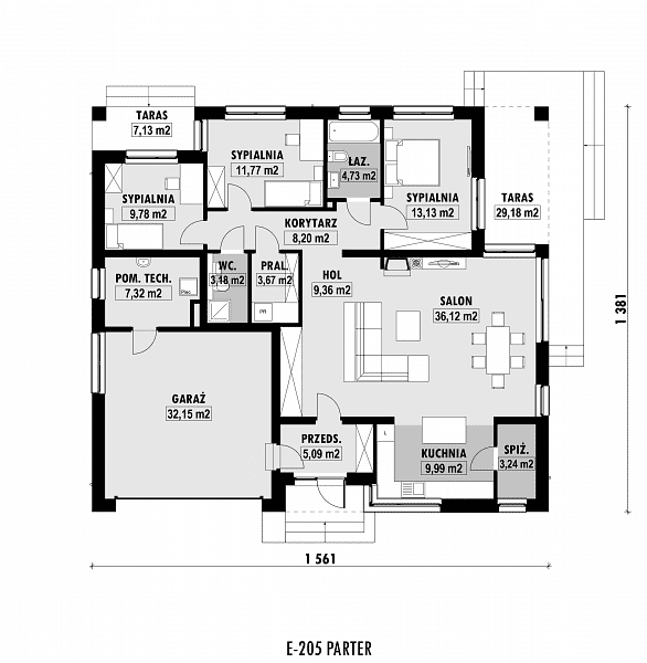- zmniejszenie lub powiększenie garażu w ramach adaptacji projektu,