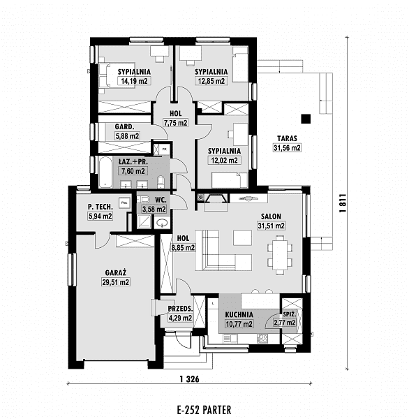 - zmniejszenie lub powiększenie garażu w ramach adaptacji projektu,