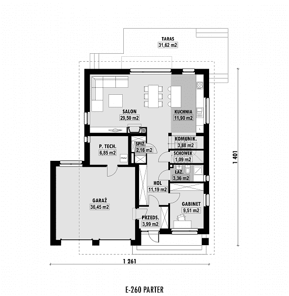 - zmniejszenie lub powiększenie garażu w ramach adaptacji projektu,