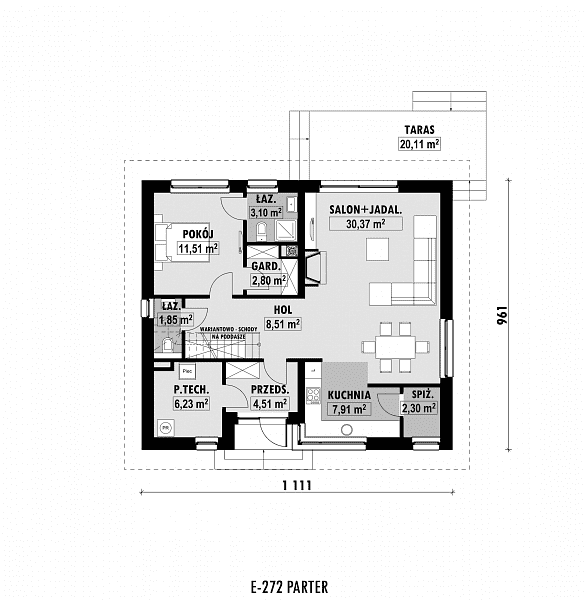 - Minimalne wymiary działki18.61 x 19.11m