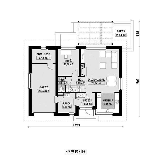 - zmniejszenie lub powiększenie garażu w ramach adaptacji projektu,