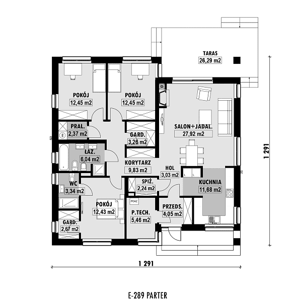 - zmniejszenie lub powiększenie garażu w ramach adaptacji projektu,